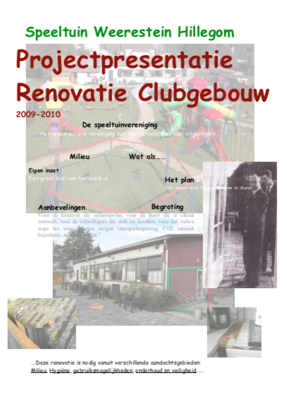 Projectplan gemaakt voor renovatie van de speeltuin 2005-2007 |